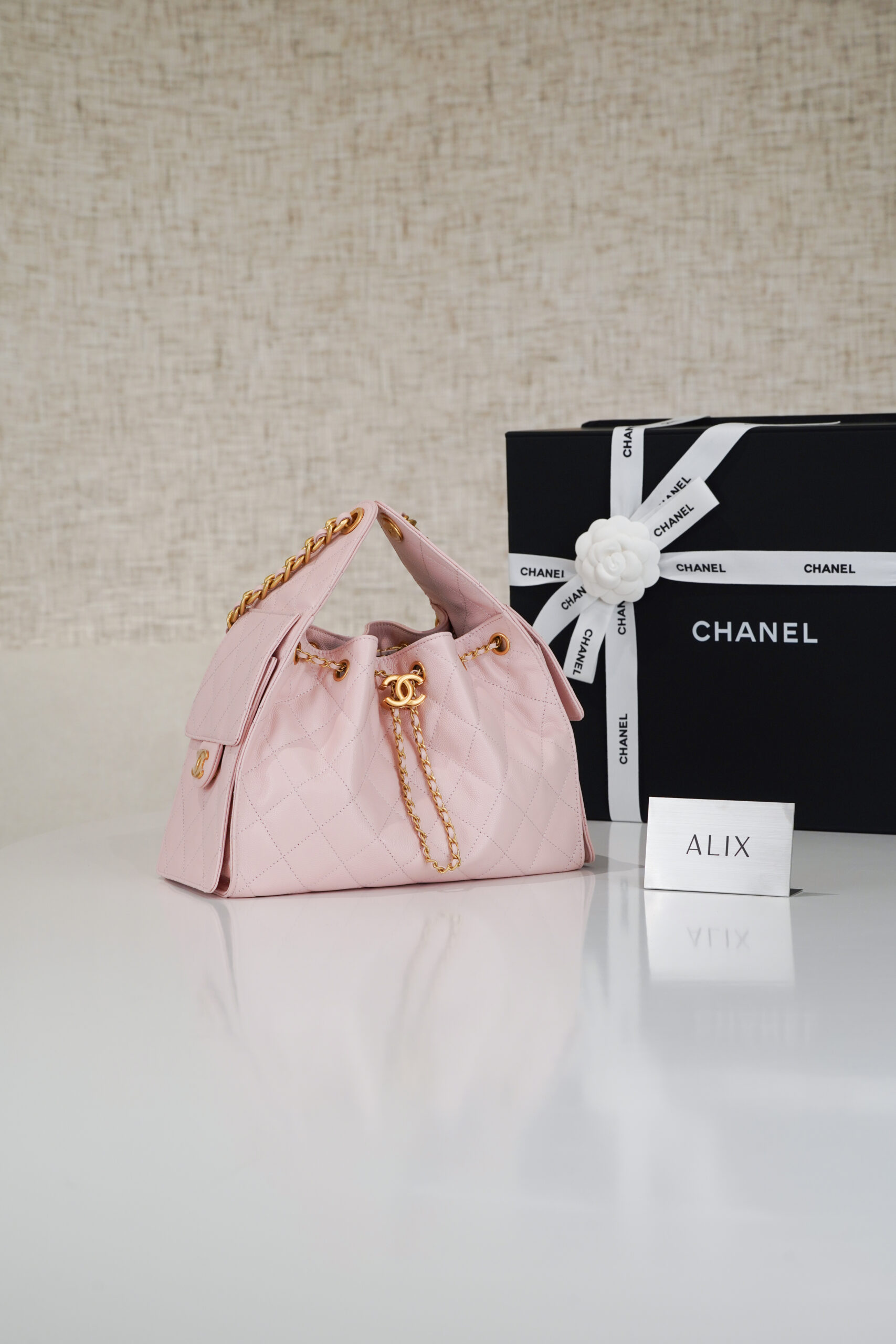 Be the first to review “CHANEL 25 – SMALL – ROSE SAKURA – CAVIAR – GOLD”
