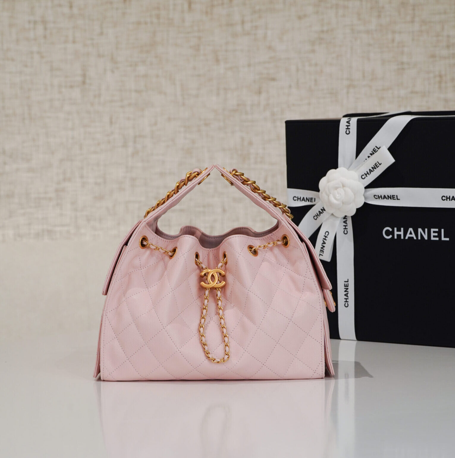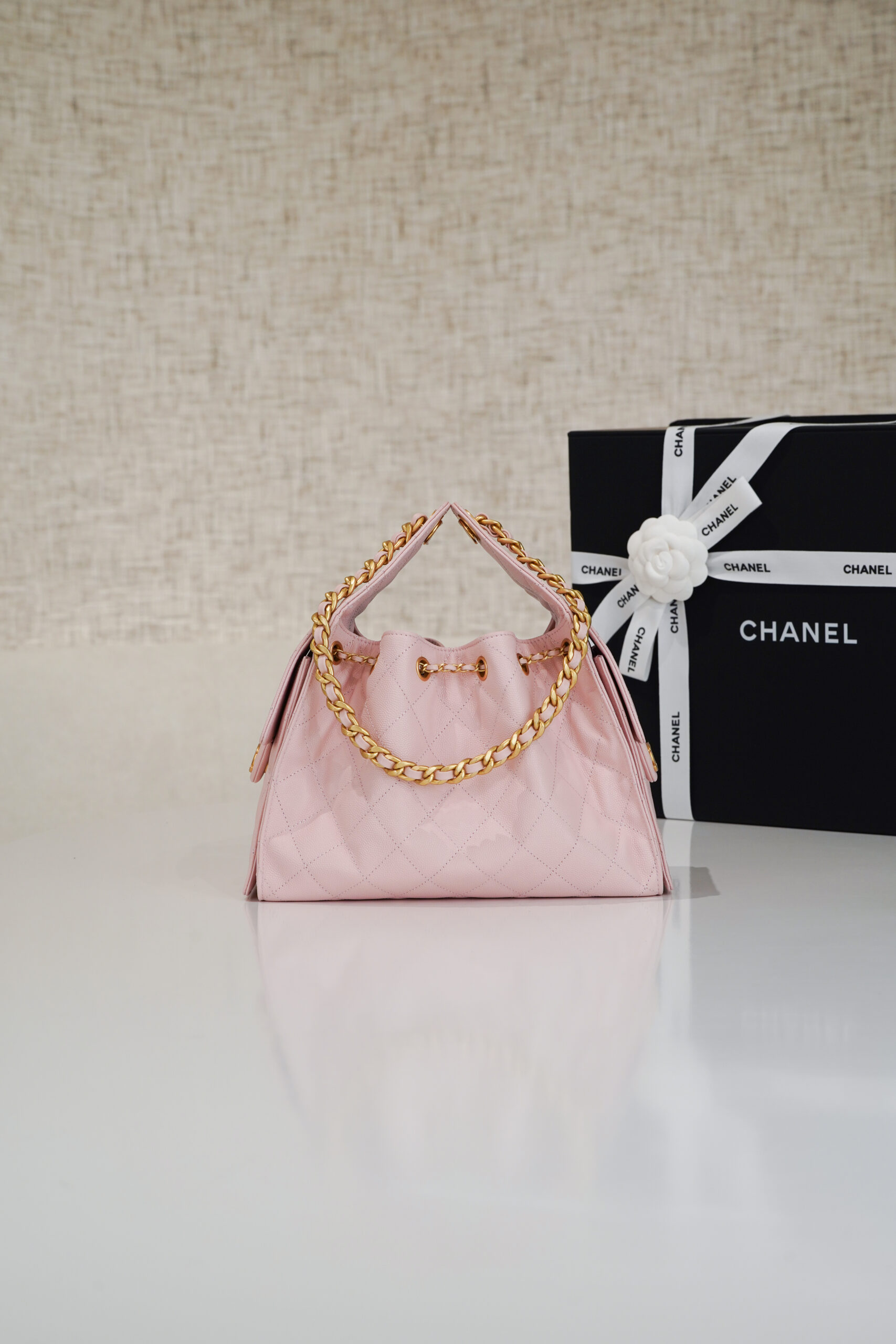 CHANEL 25 – SMALL – ROSE SAKURA – CAVIAR – GOLD