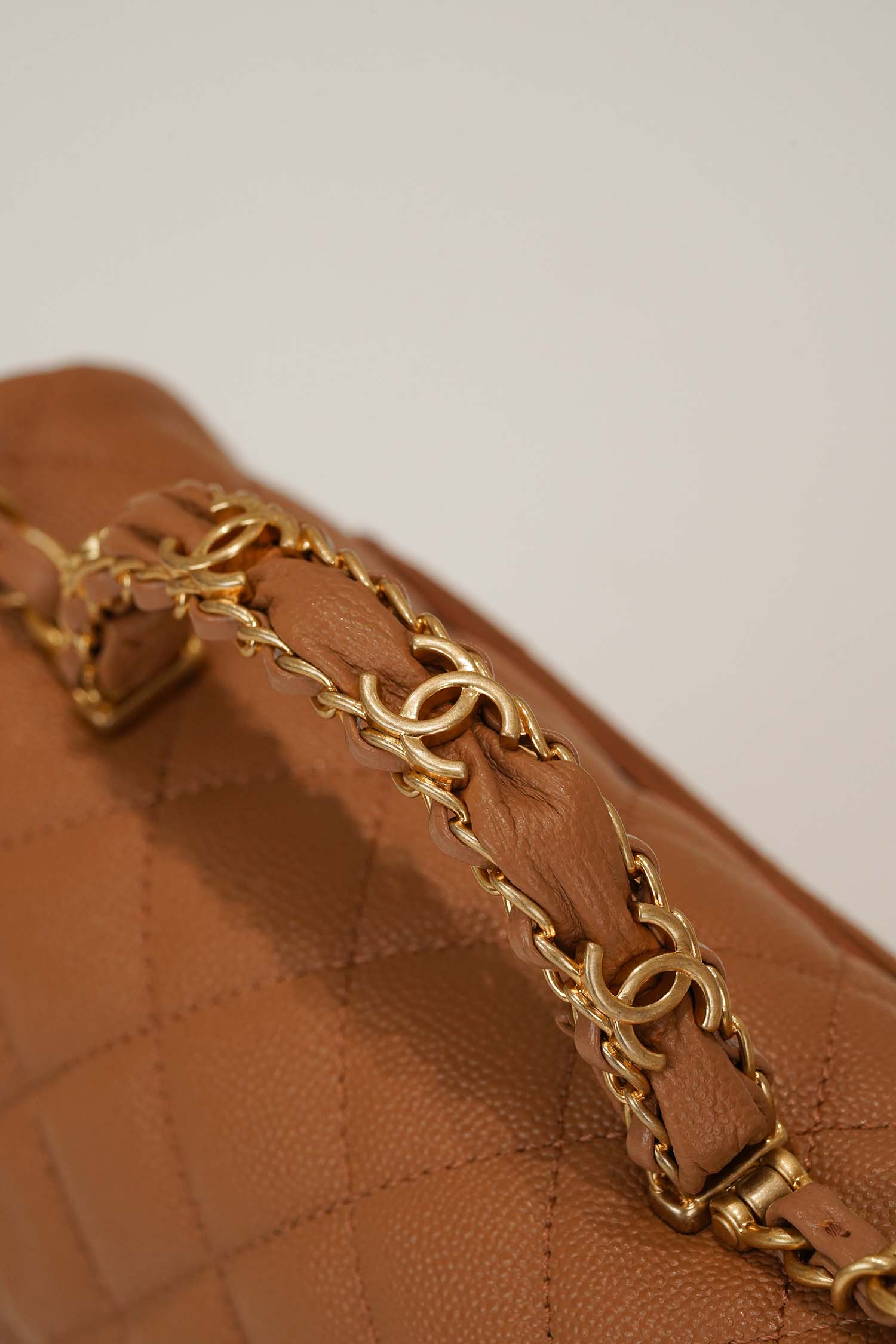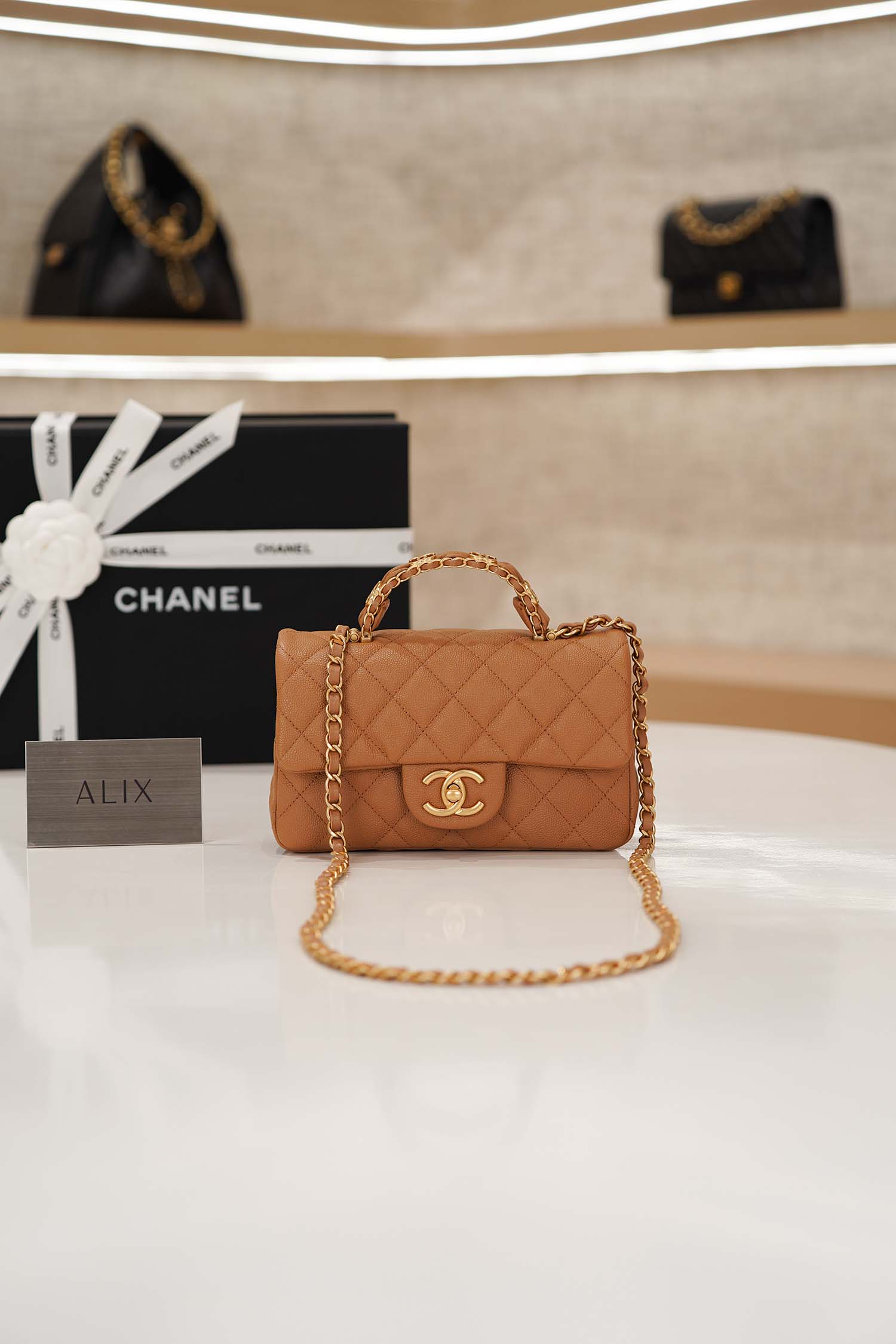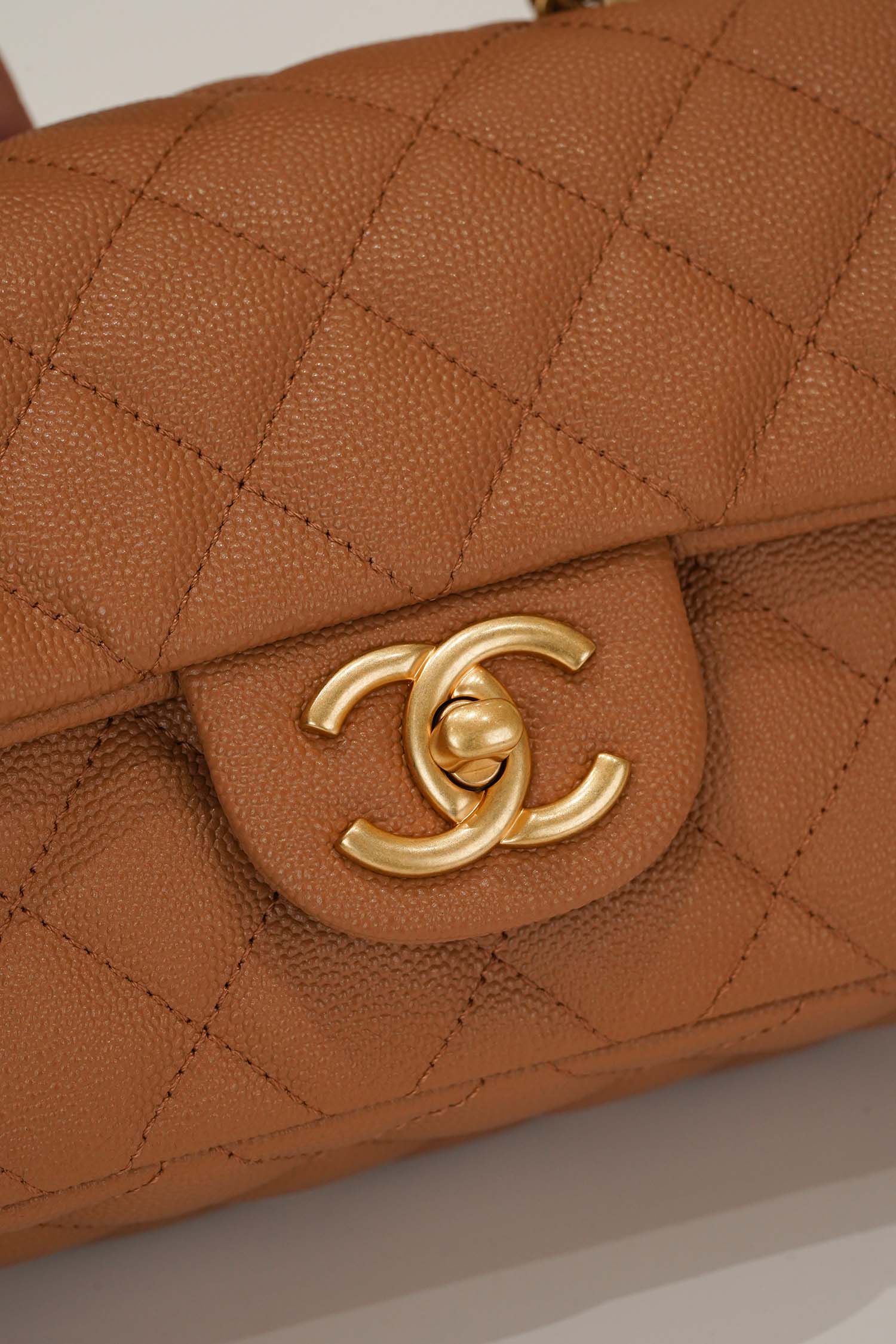 Elegant Top Handle design: A structured leather-wrapped handle that embodies Chanel’s signature grace and sophistication.