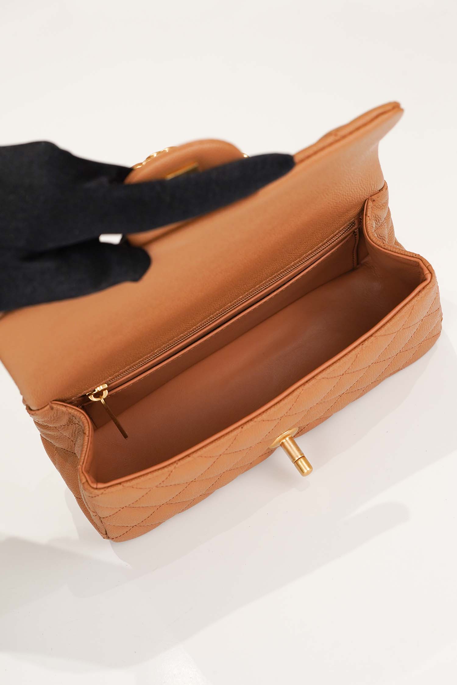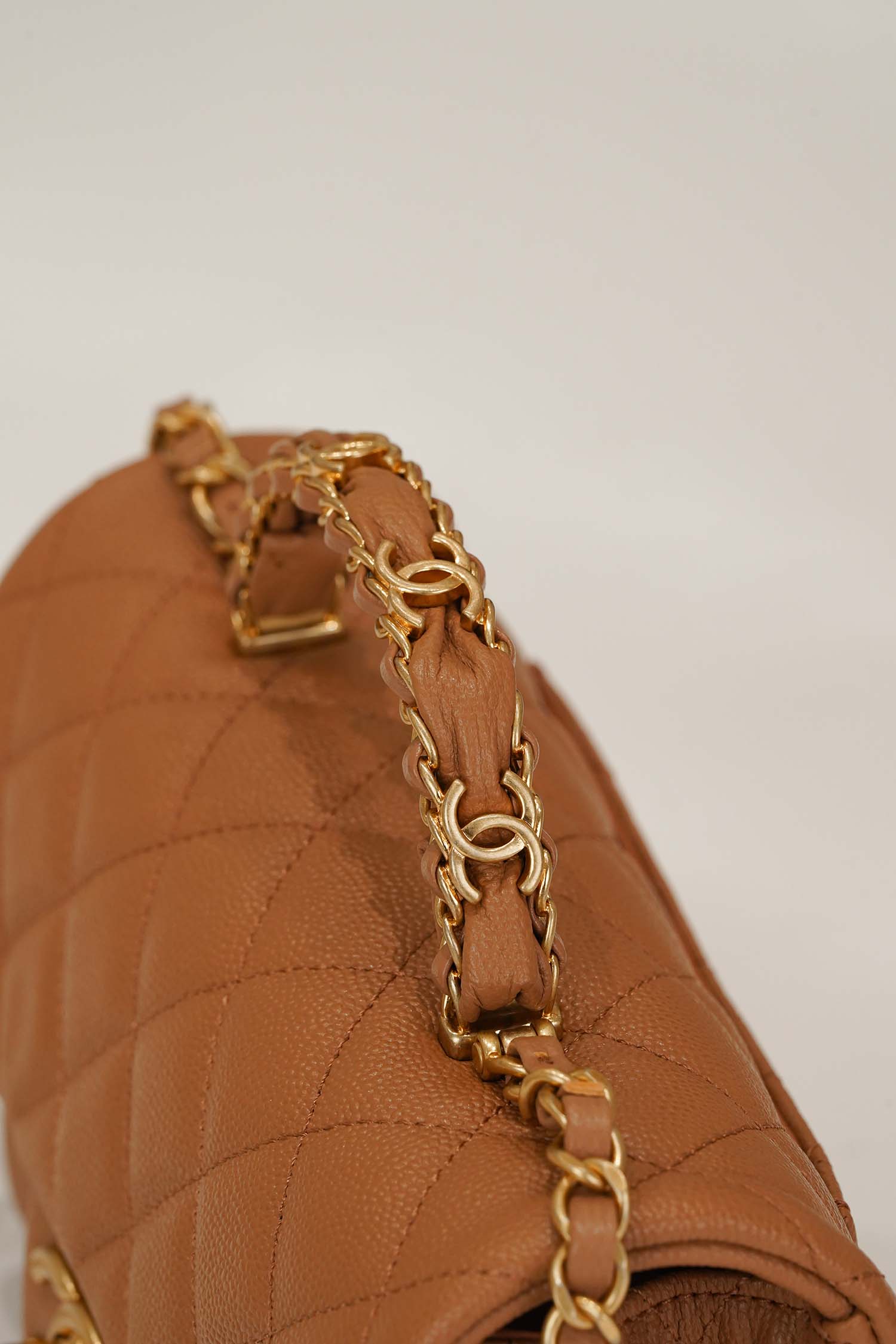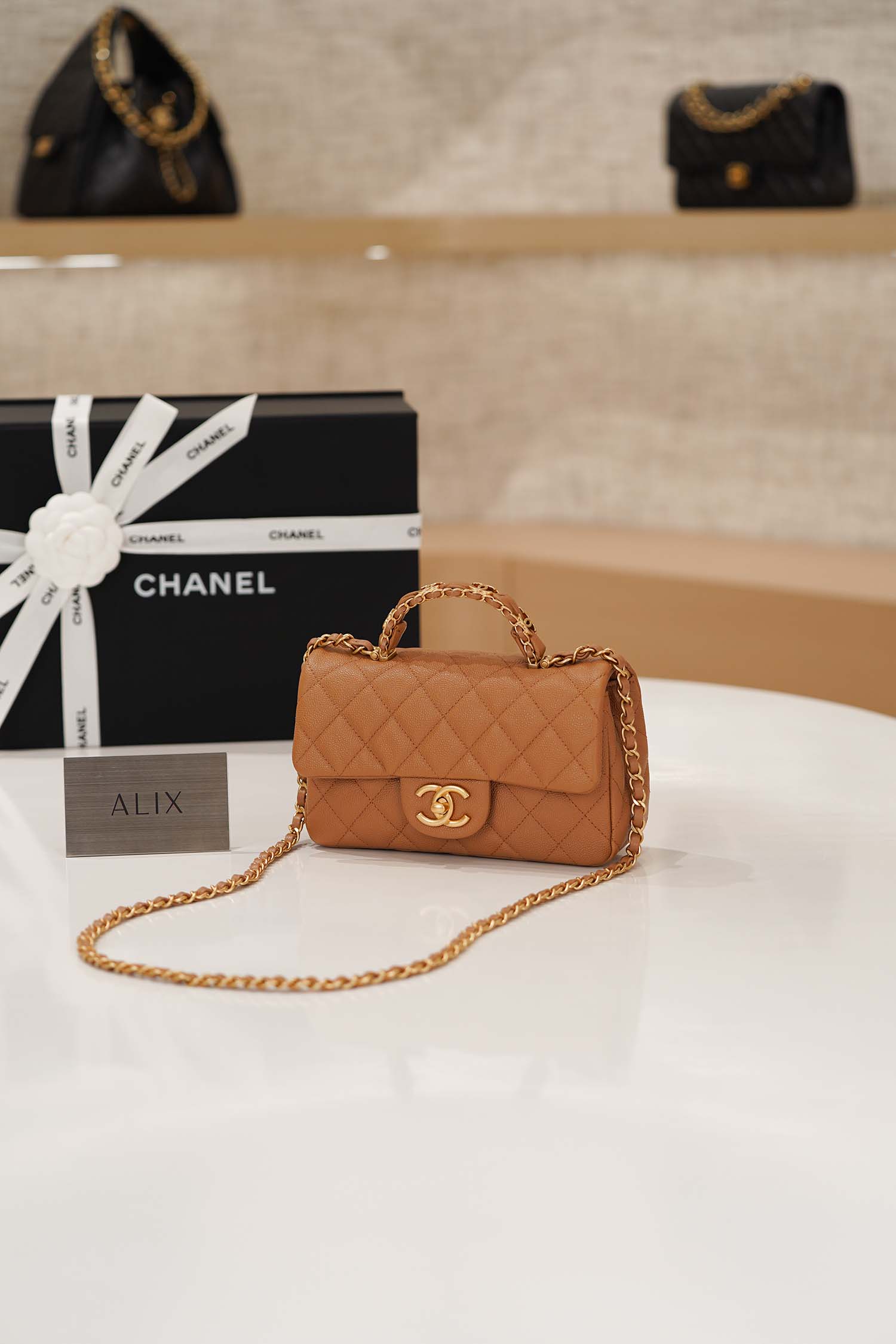 Elegant Top Handle design: A structured leather-wrapped handle that embodies Chanel’s signature grace and sophistication.