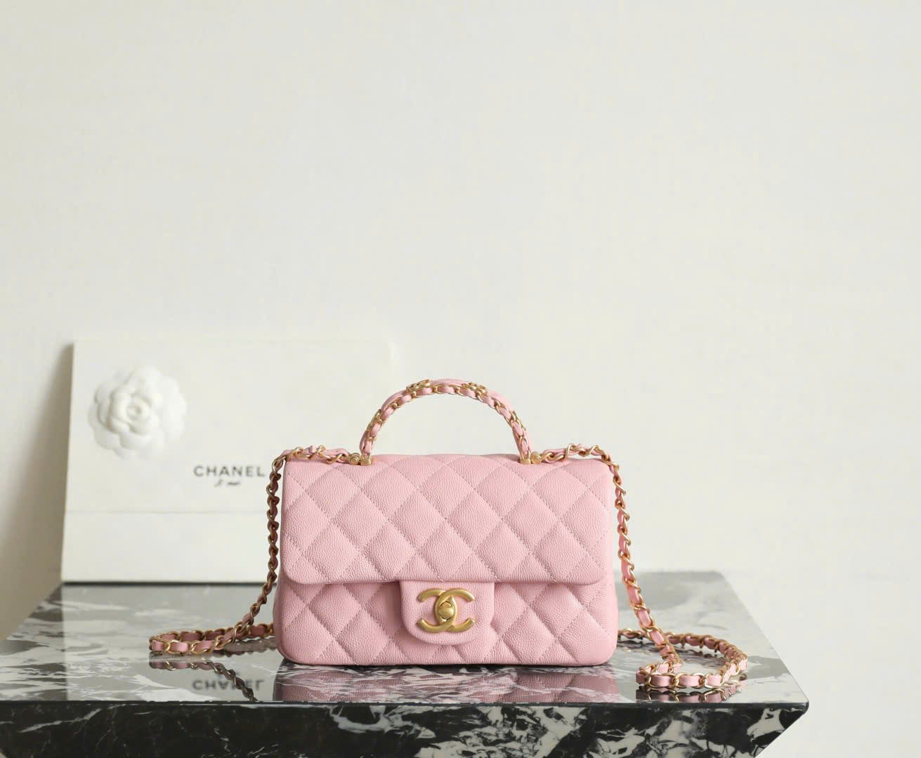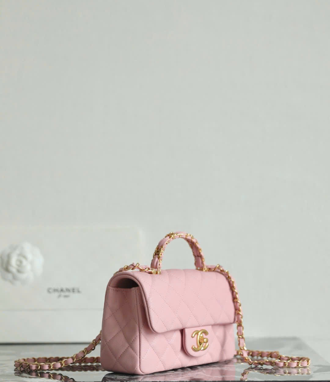 Elegant Top Handle design: A structured leather-wrapped handle that embodies Chanel’s signature grace and sophistication.