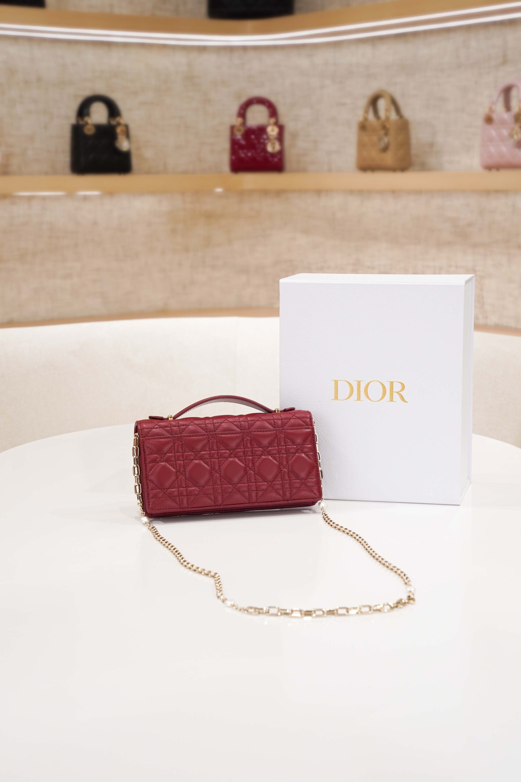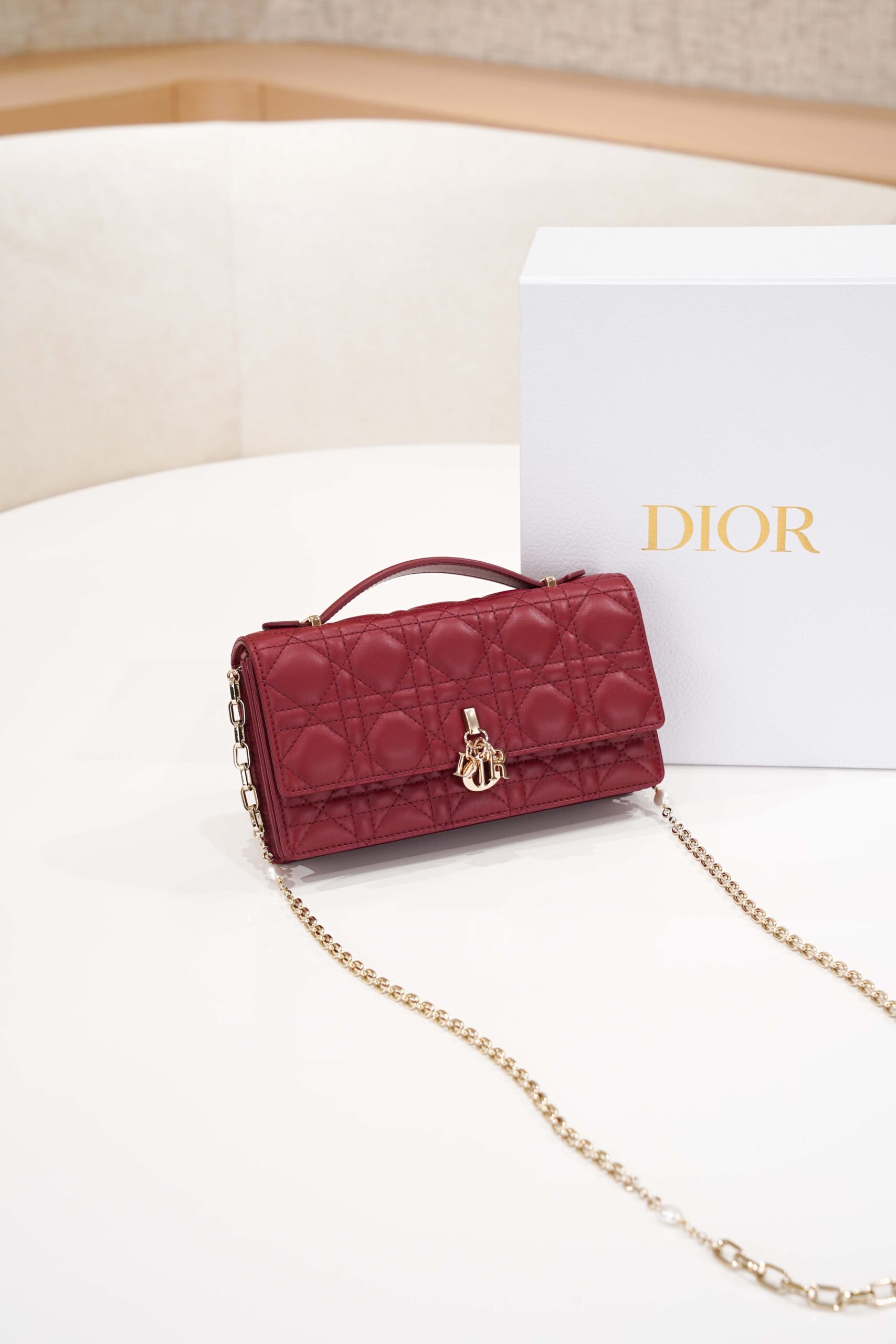 DIOR MISS MINI BAG – BURGUNDY – LAMBSKIN – GOLD